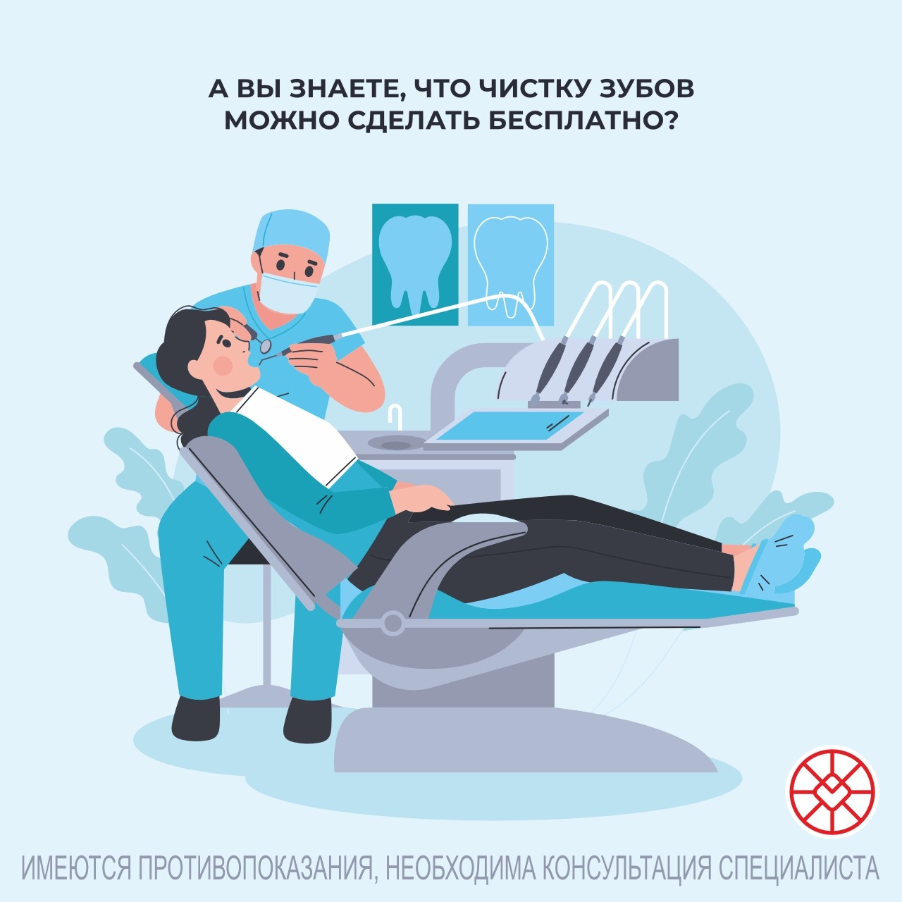 При необходимости в Центре здоровья можно сделать профессиональную гигиену полости рта бесплатно.